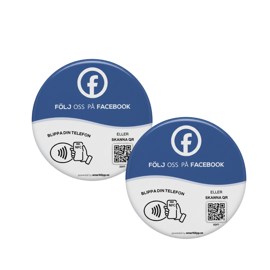 Med vårt Facebook Klistermärke – NFC & QR Kod räcker det att kunden blippar sin mobil eller scannar QR-koden för att komma direkt till din Facebooksida.
