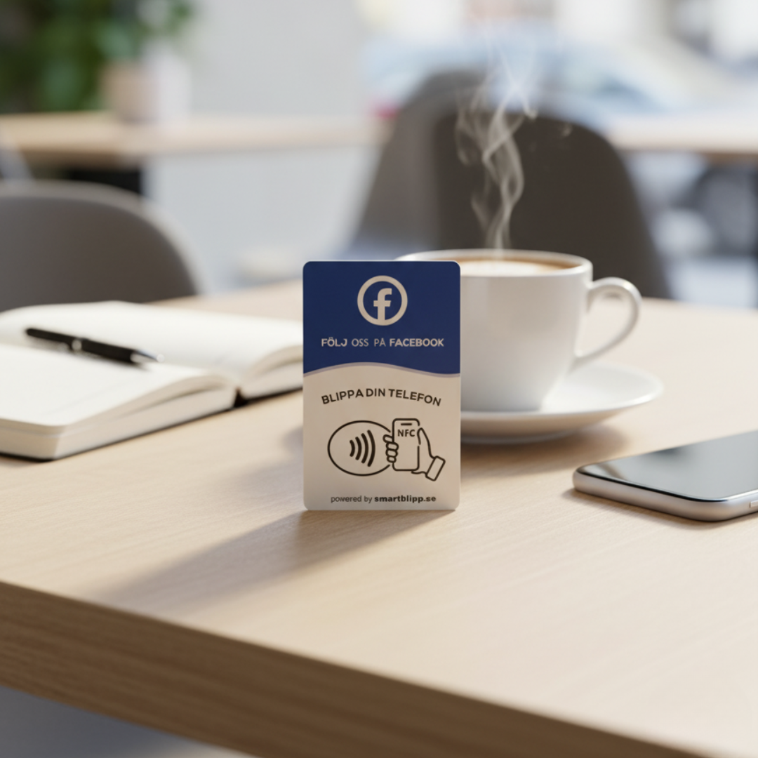 Föreställ dig att en kund står vid kassan eller bordet. De håller upp sin mobil, blippar skylten – och på en sekund öppnas din Facebook-profil. Inga sökningar, inget krångel. Bara ett klick bort från en ny följare.