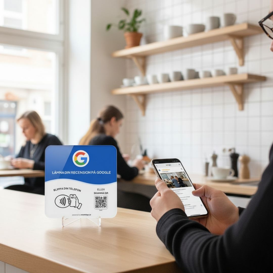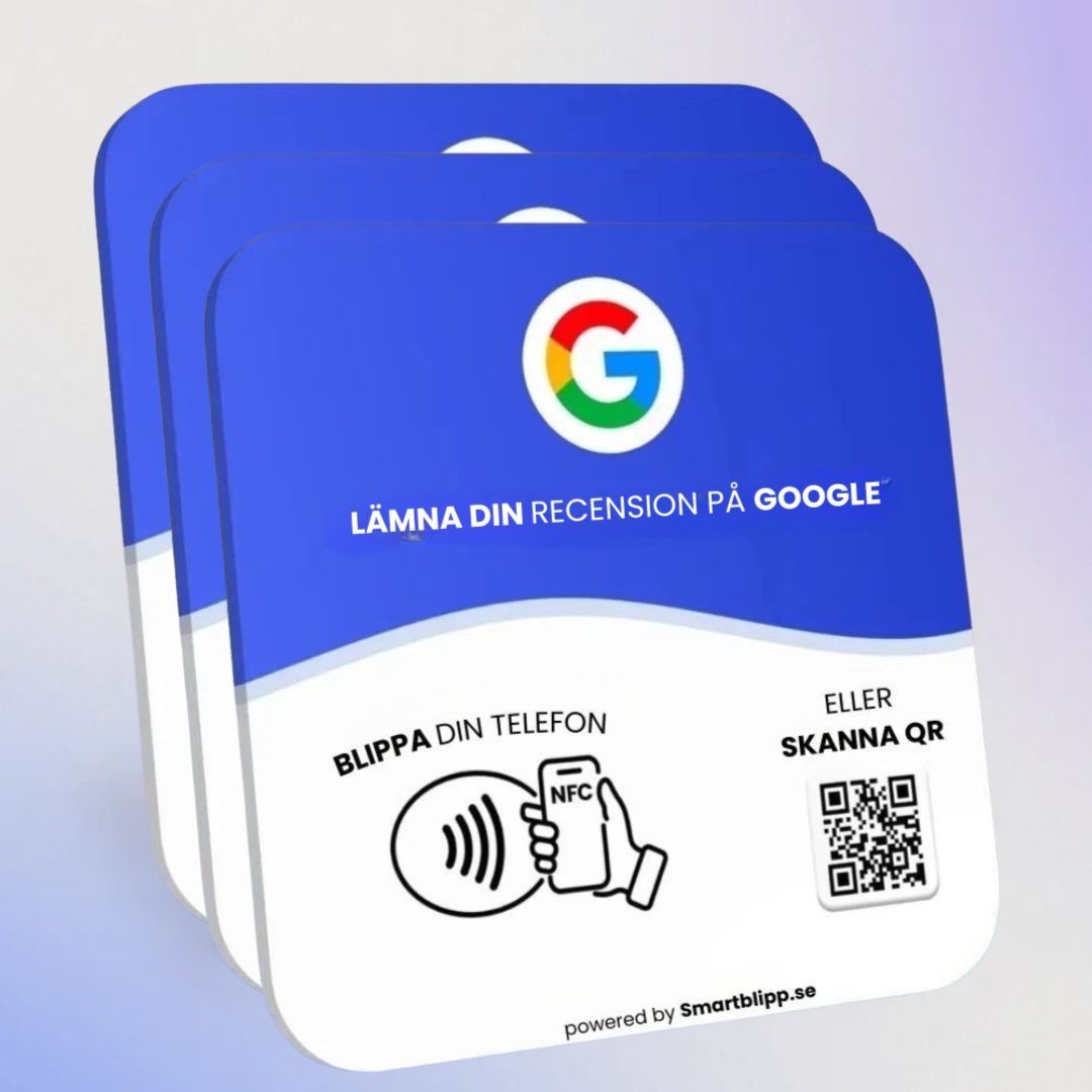 Dina Google produkter levereras färdigprogrammerade och länkade direkt till din Google-recensionssida – klara att användas direkt. Ingen installation krävs!
