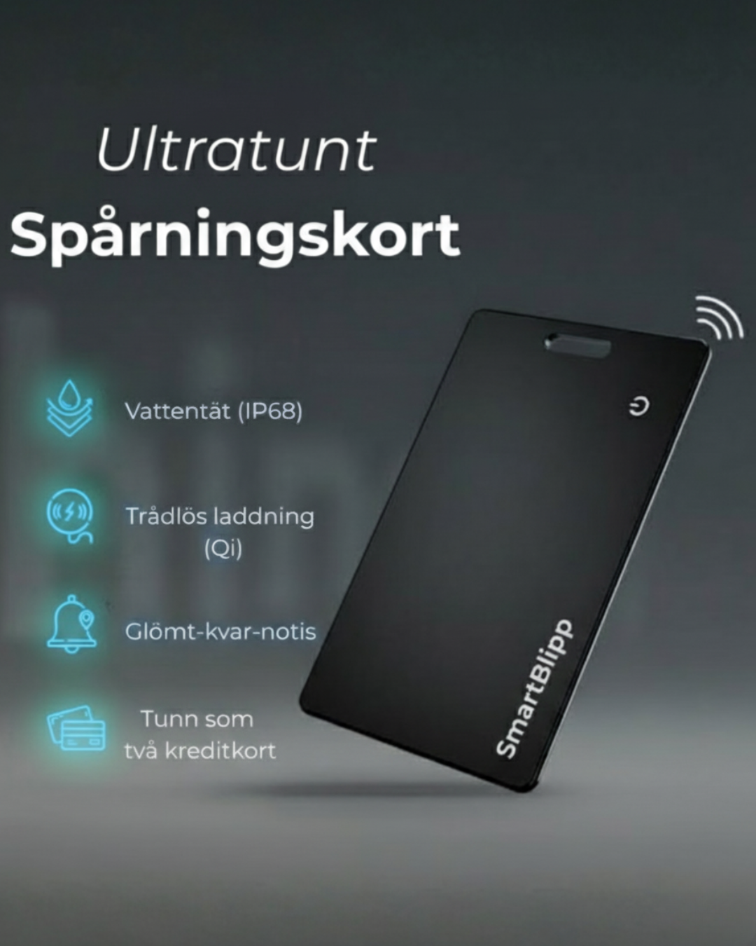 SmartCard är framtidens sätt att hålla koll på dina värdesaker – ett ultratunt spårarkort på endast 1,8 mm, designat för att passa perfekt i plånbok, väska eller passfodral.