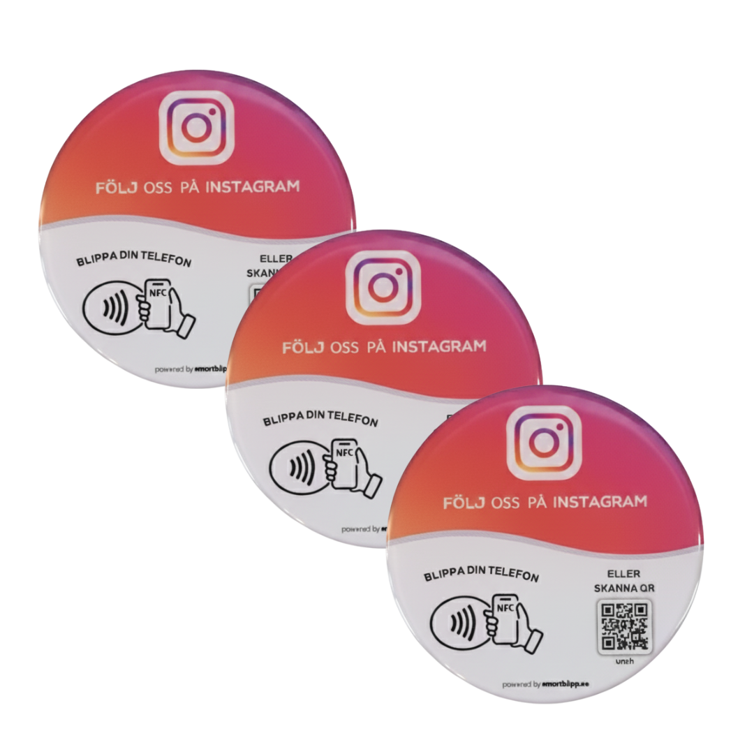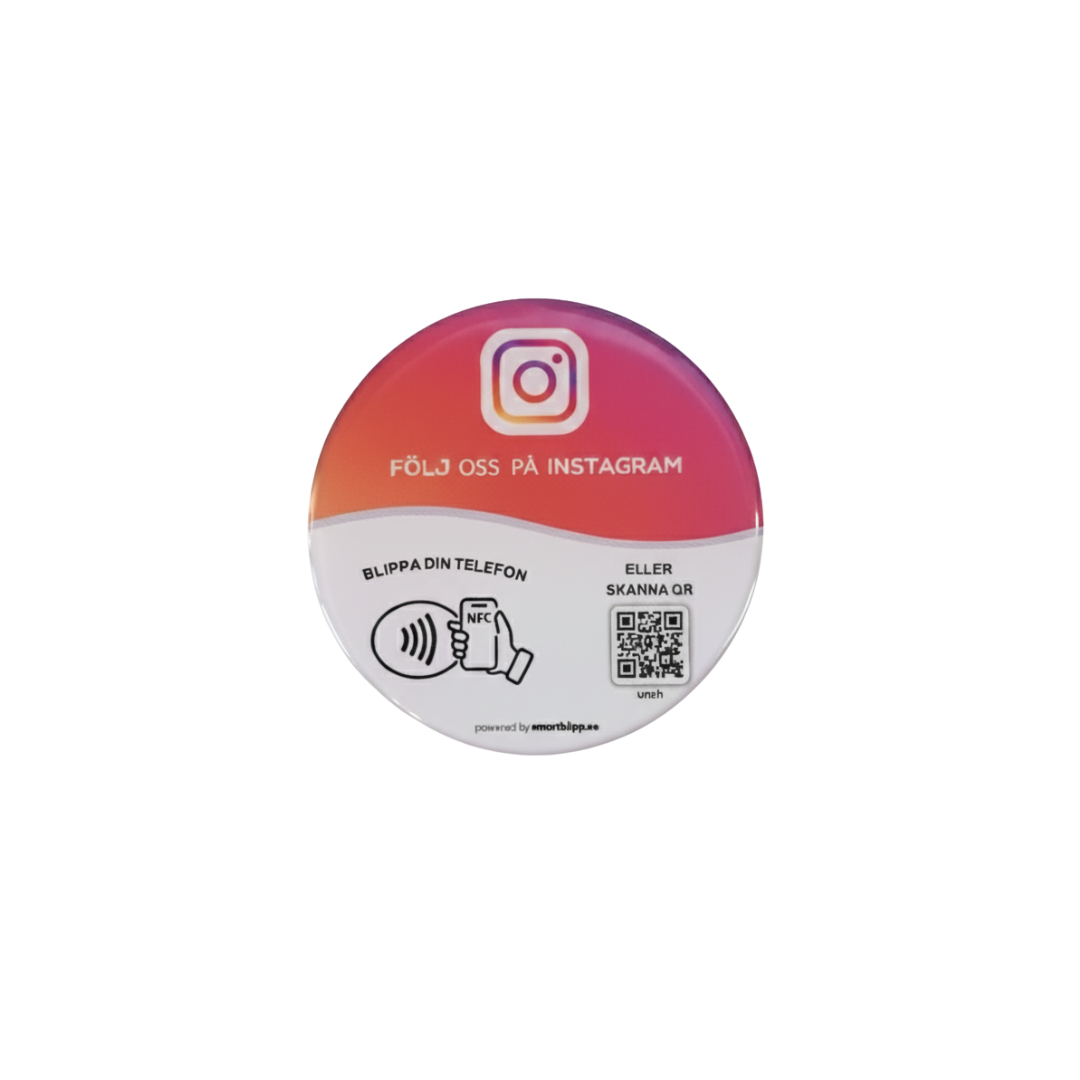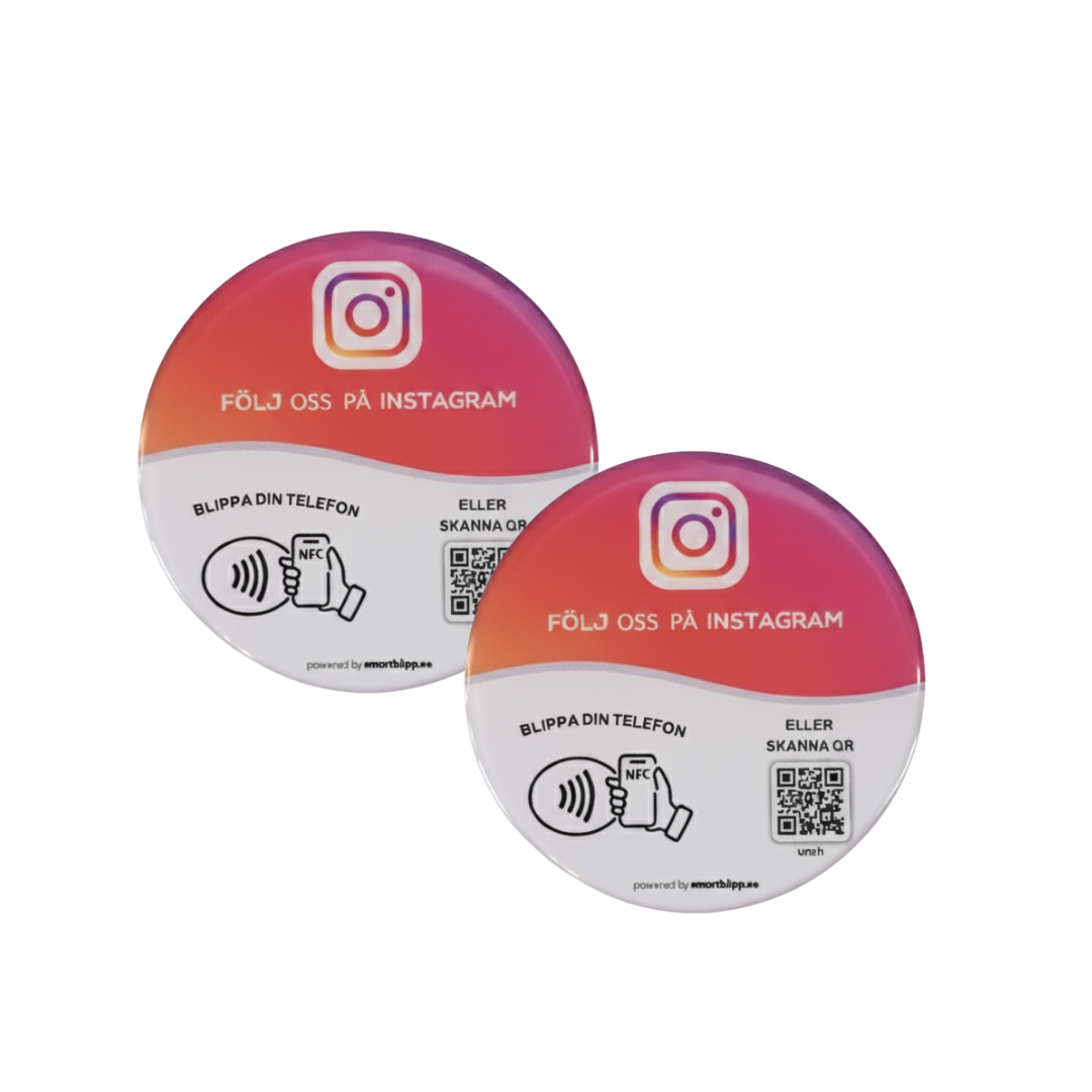 Med vårt Instagram Klistermärke – NFC & QR Kod kan kunderna blippa sin mobil eller scanna QR-koden för att komma direkt till din Instagramprofil.