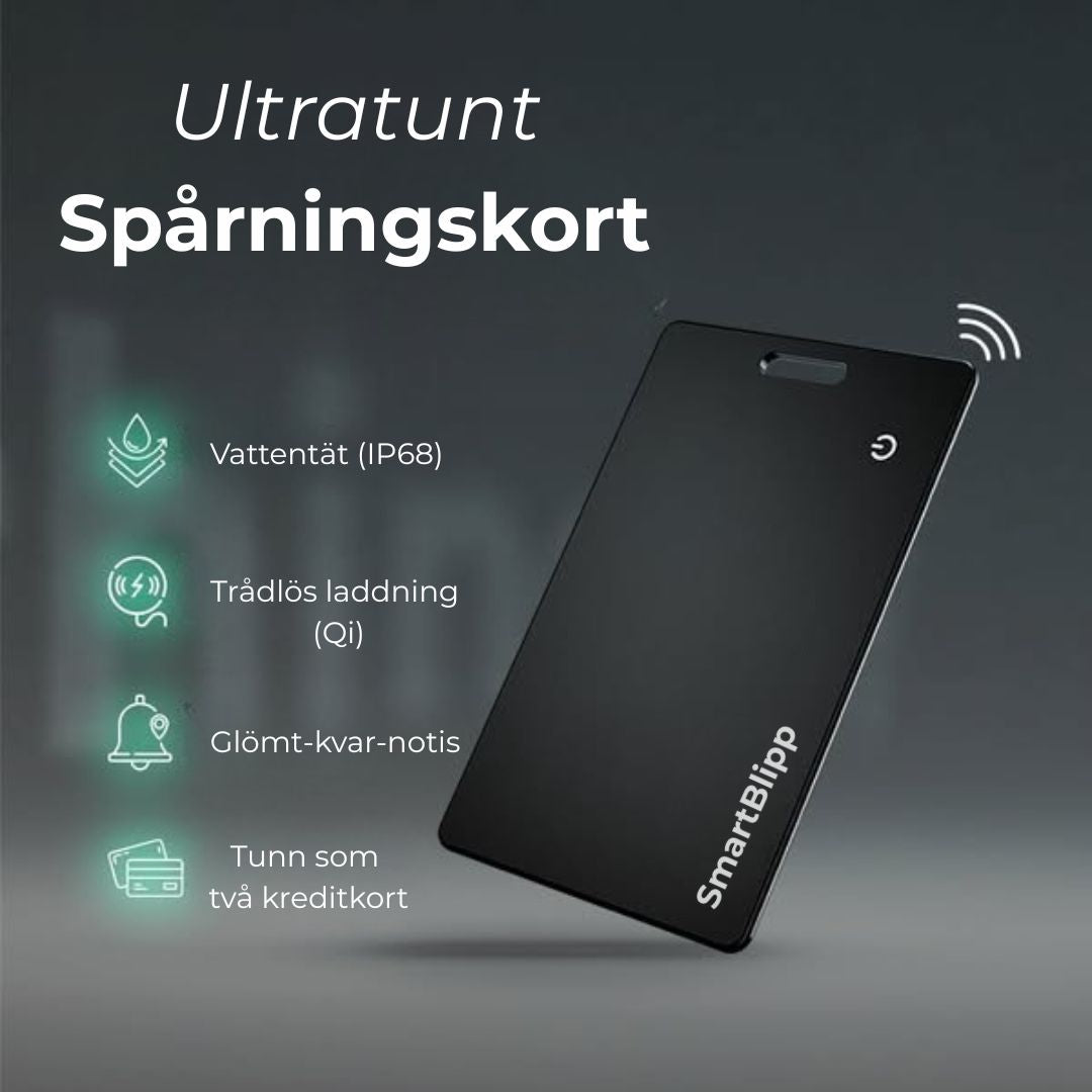 Spårningskort är framtidens sätt att hålla koll på dina värdesaker – ett ultratunt spårarkort på endast 1,8 mm, designat för att passa perfekt i plånbok, väska eller passfodral.